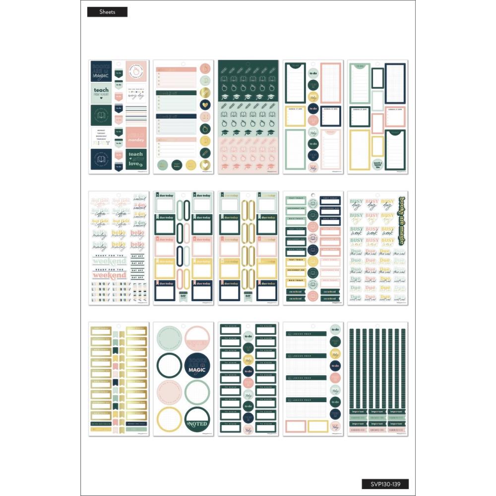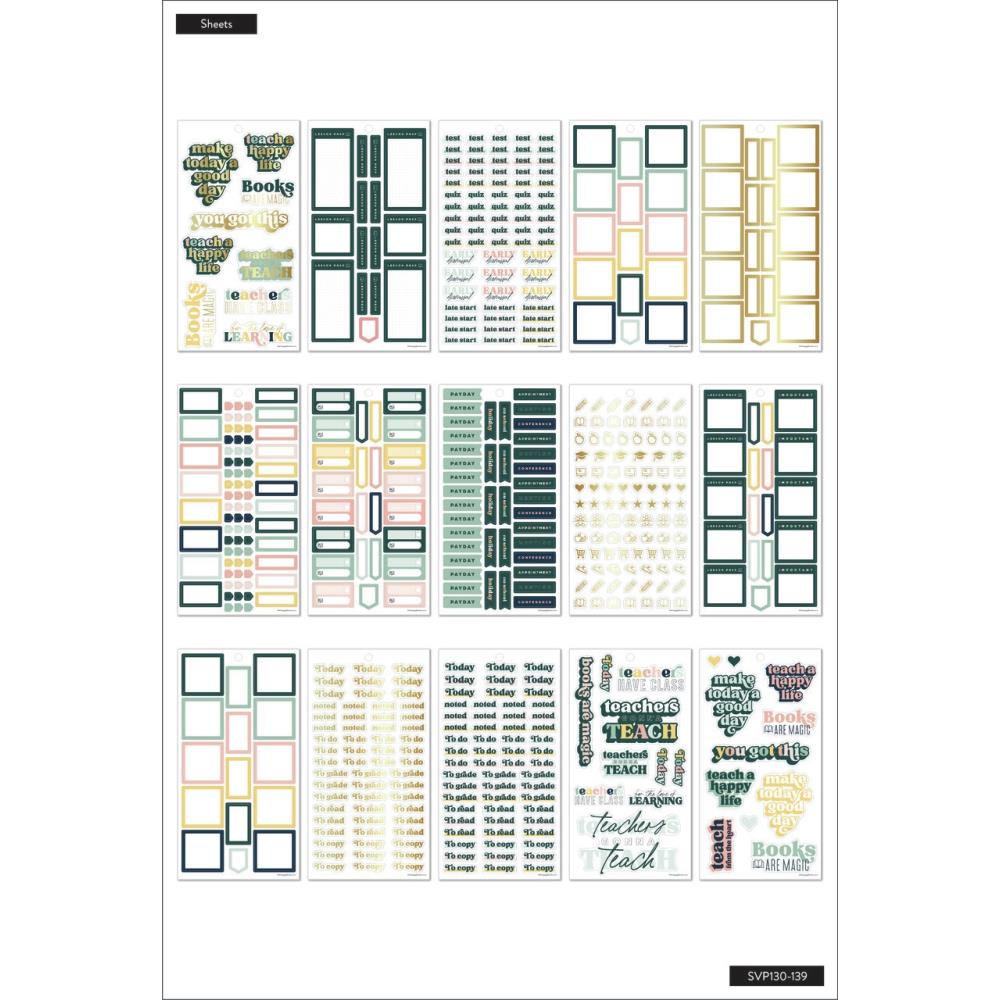 The Happy Planner's teacher-themed sticker book is the perfect tool to help you manage your lesson plans effectively. Packed with 932 stickers across 30 sheets, you'll find a range of school-related labels that will remind you of your meetings and deadlines. These stickers come in inspiring quotes and decorative designs that can brighten up any empty space. Whether you use them in your Happy Planner, notebook, or bullet journal, these stickers are a fantastic addition to your school year planning.