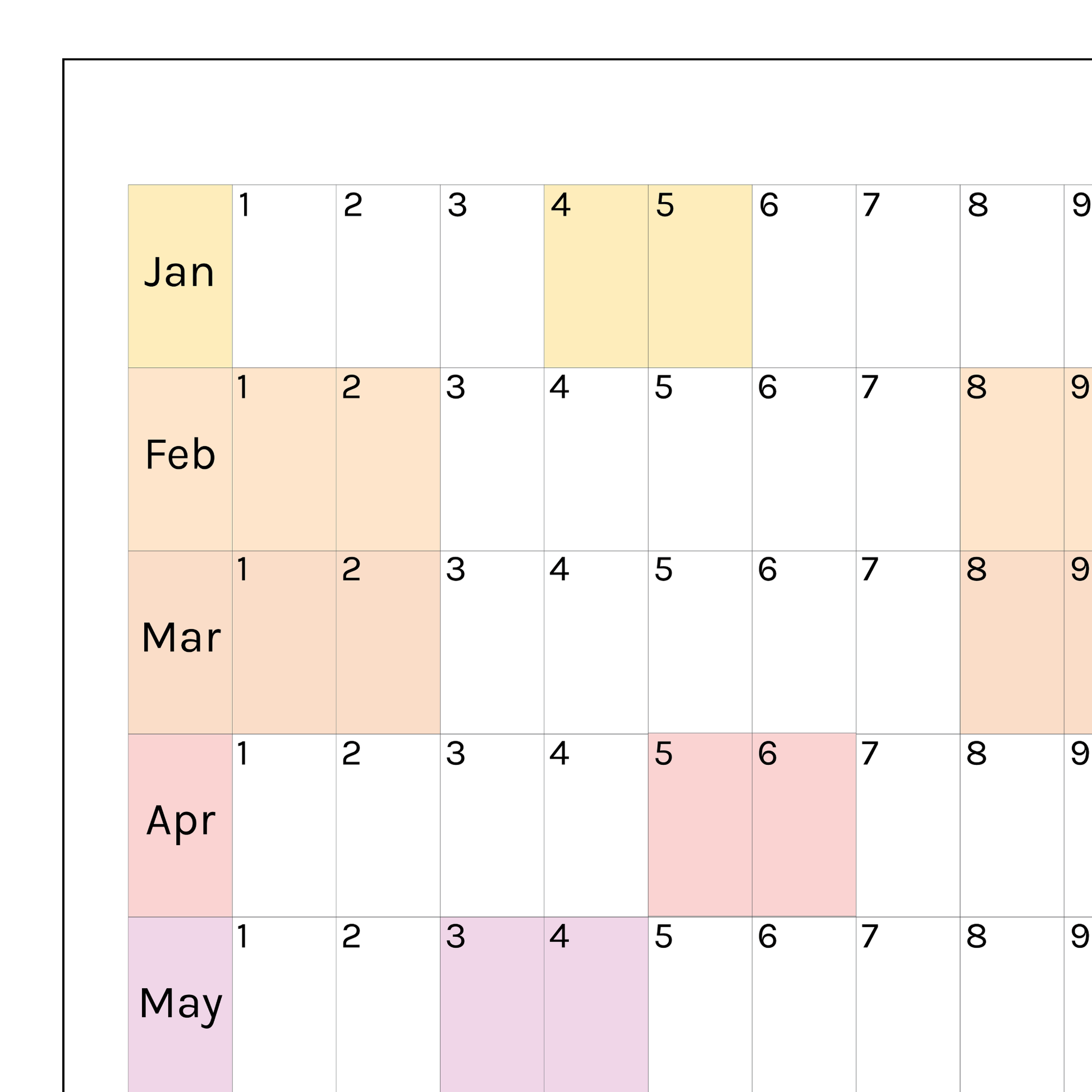 Horizontal 2025 Paper Wall Planner | Julie's Rainbow