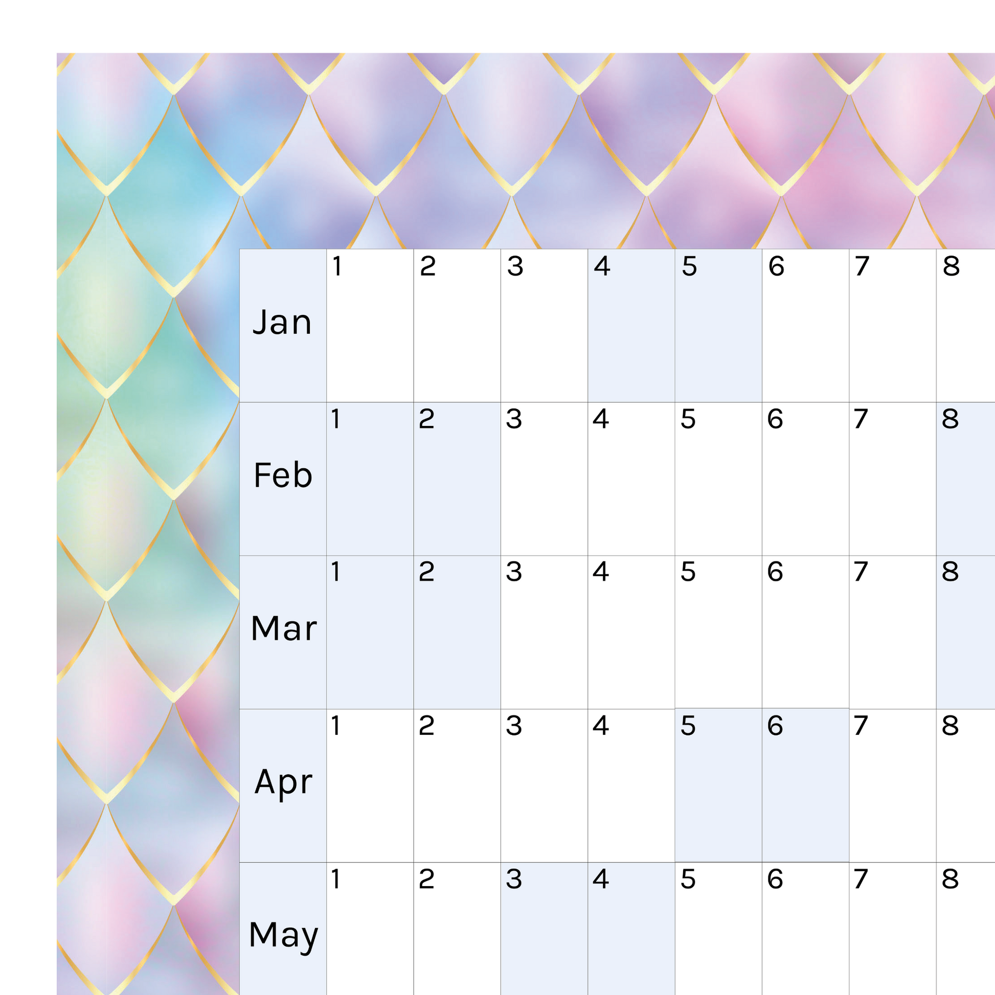 Prefer a different layout? The Mermaid Tail design is also available in a Vertical Wall Planner option, offering flexibility for whichever format suits your space best.