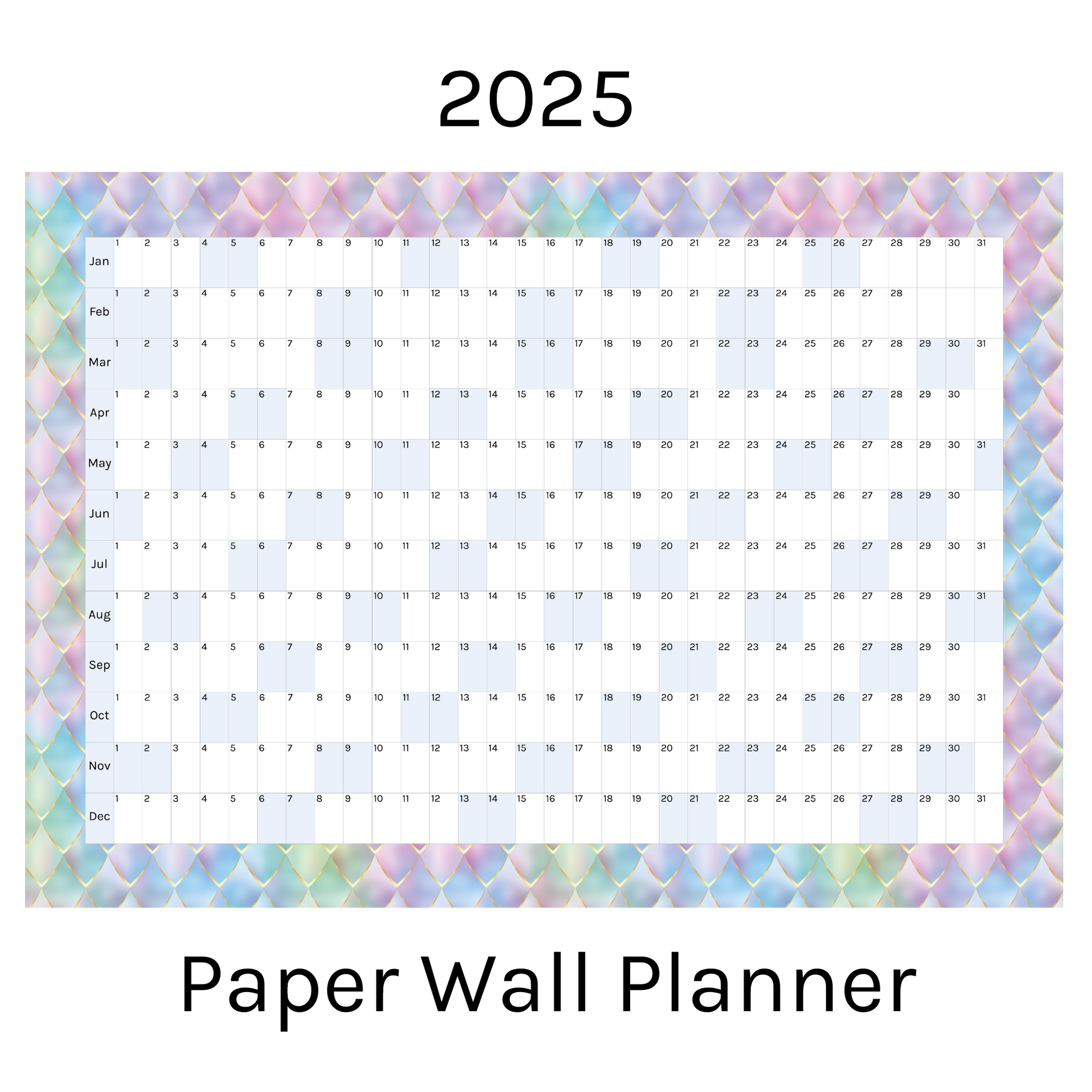Horizontal 2025 Paper Wall Planner | Mermaid Tail