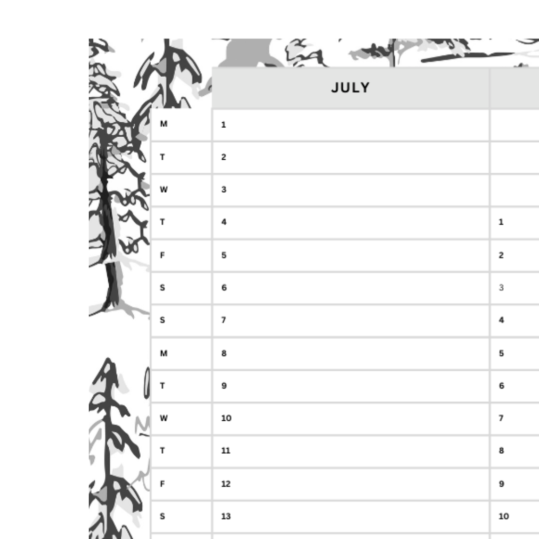 - Elegant Design: The "Noir Woodland" pattern showcases detailed forest scenes in a classic black and white palette, adding a refined and serene touch to your planning routine.