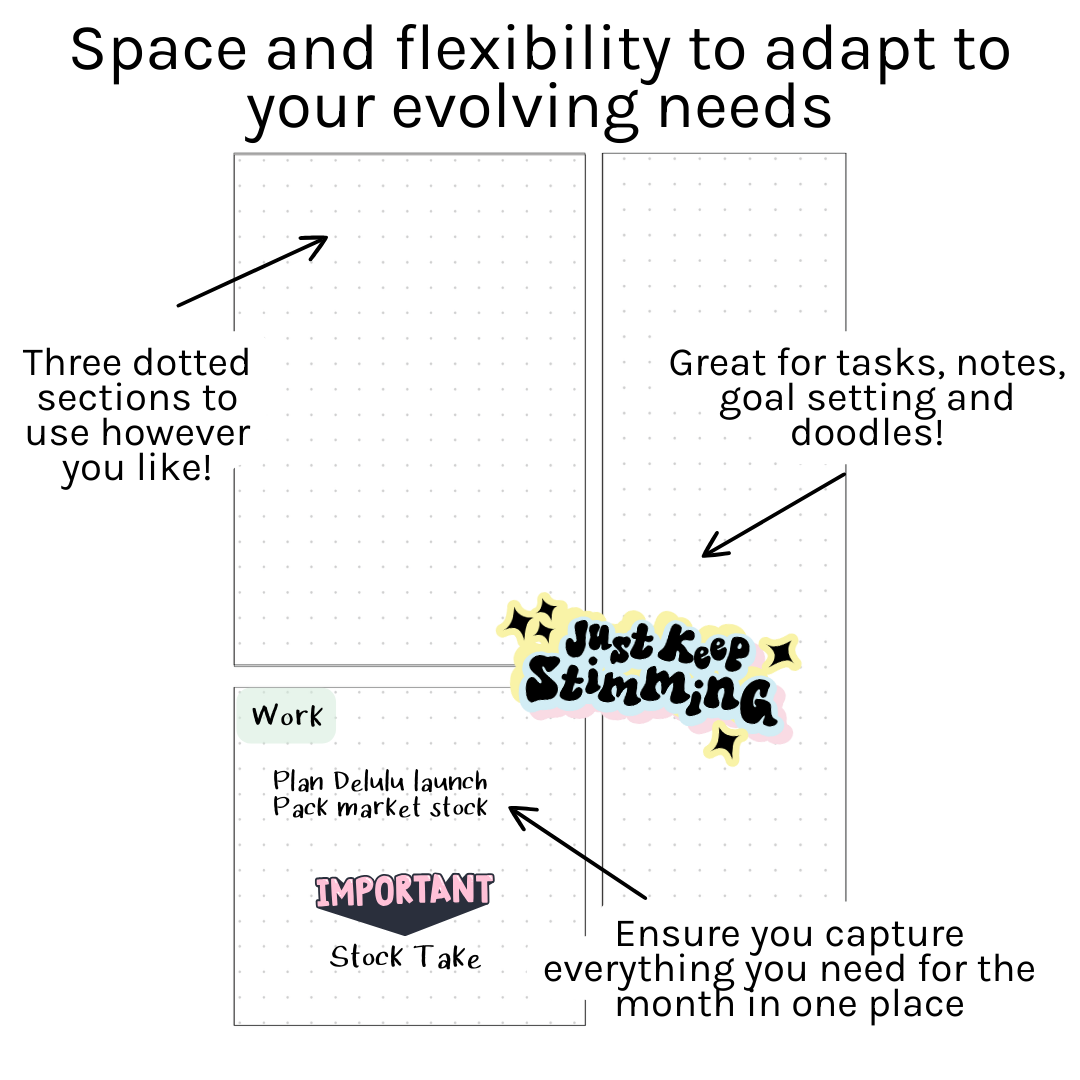 Why You’ll Love It: This undated monthly dashboard spread insert is perfect for those who don't need daily detail but want to stay organised and take control of their focus.