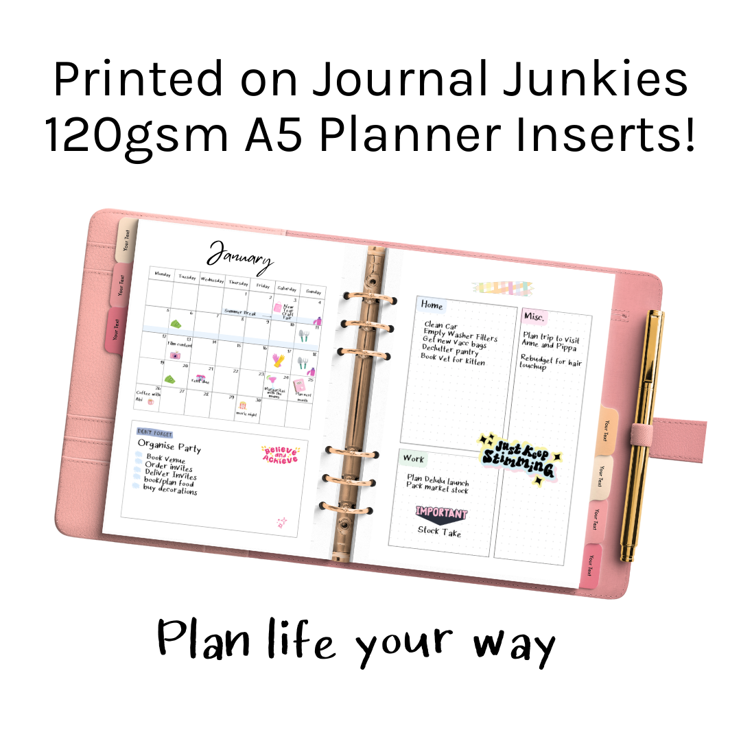 - Pre-Punched for A5 Planners – Fits perfectly into our 6-ring binder planners for easy organisation.