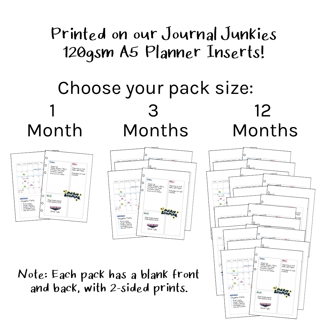 Loose Leaf A5 Planner Inserts 120gsm | Undated Monthly Dashboard
