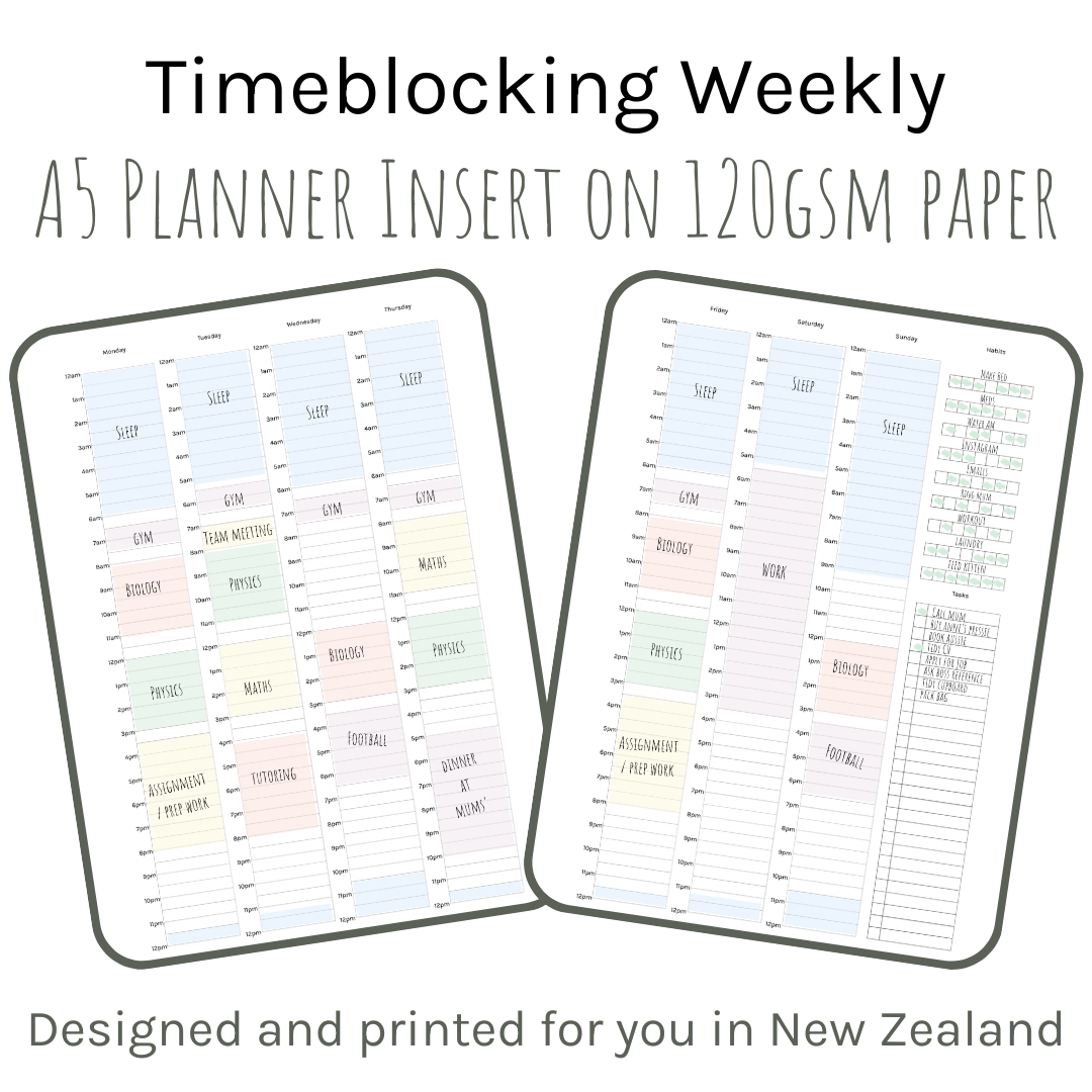 Loose Leaf A5 Planner Inserts 120gsm | Timeblocking Weekly