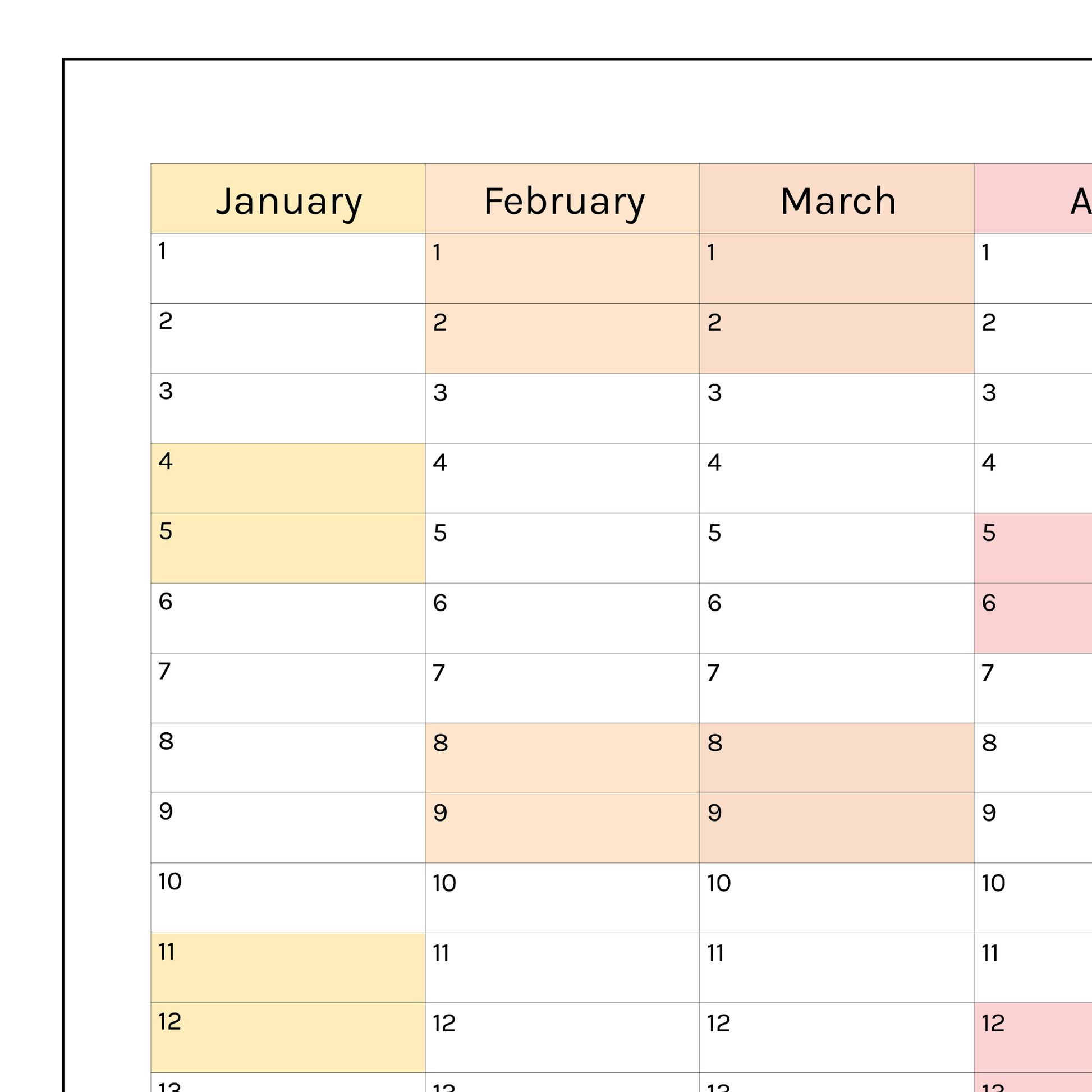 Monthly Overviews: Each month is clearly displayed for at-a-glance planning and quick reference, keeping your year neatly arranged and accessible.