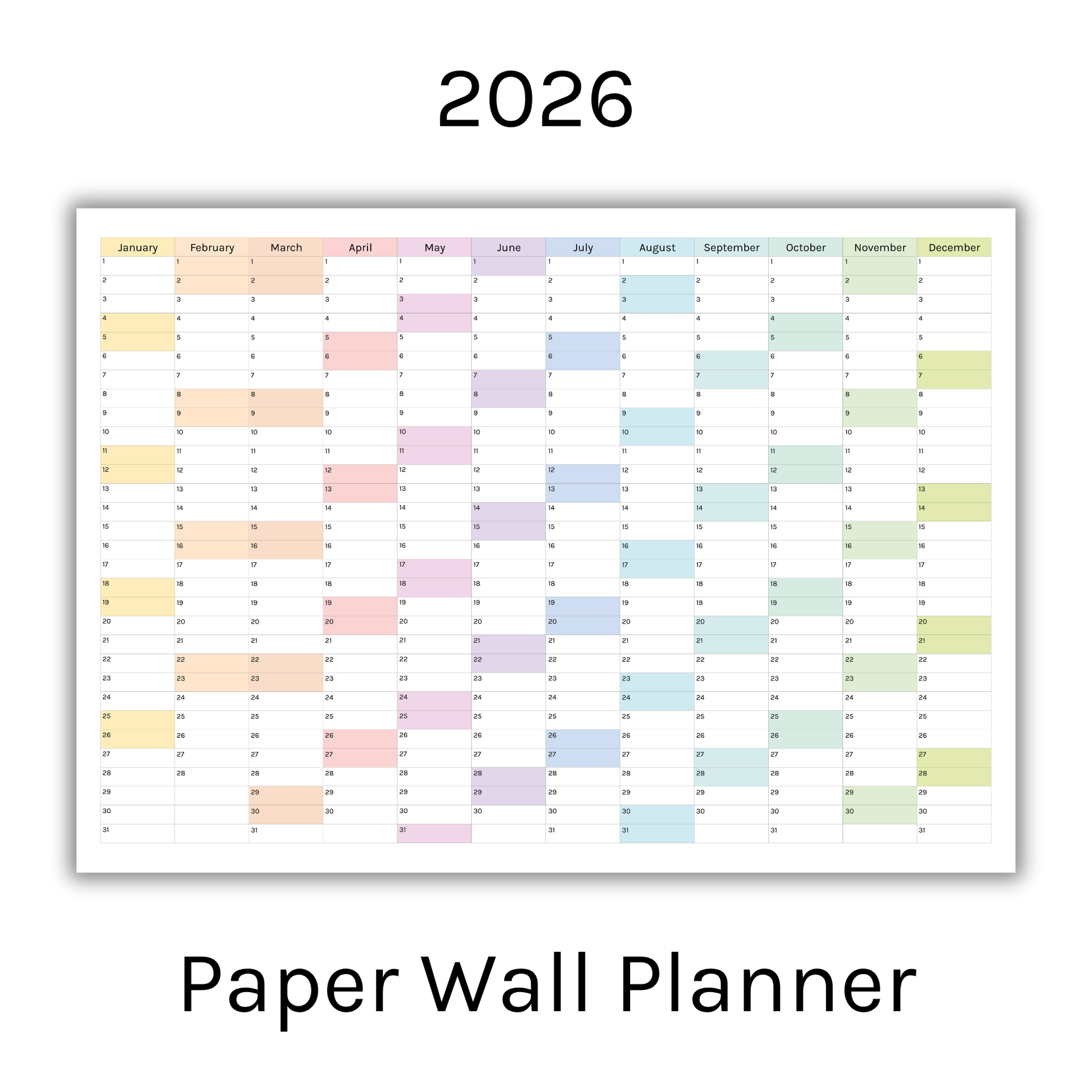 Vertical 2026 Paper Wall Planner | Julie's Rainbow